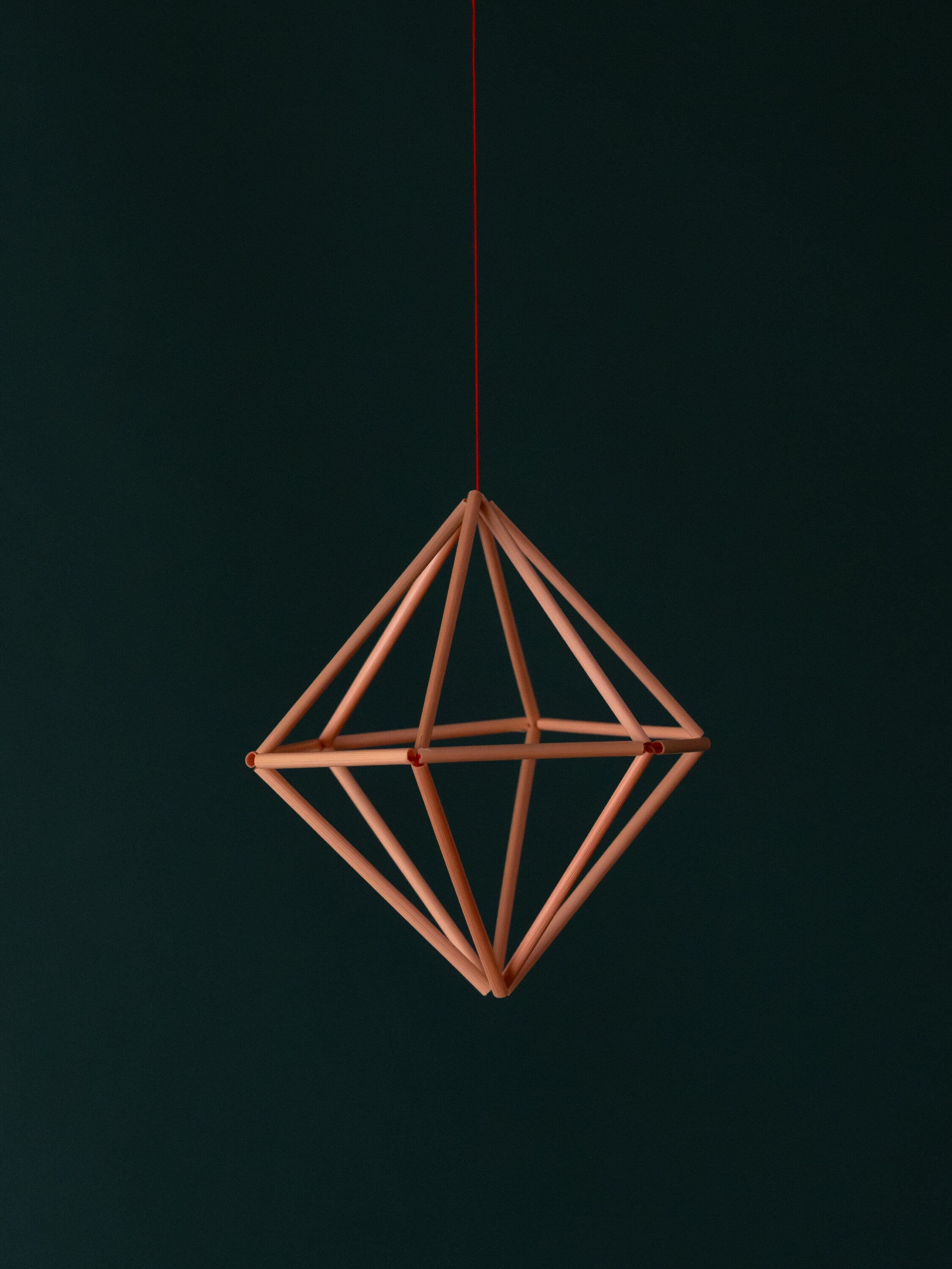制作過程も、できあがった作品も、自然の気づきや癒しを運んでくれるヒンメリ。美しい幾何学模様が、日々の暮らしに光と影のリズムを生み出します。軽やかな麦藁は天井などから吊るしてお使いいただけます。日中はその素材の美しさを、夜には灯りの中で影の表情を楽しめます。